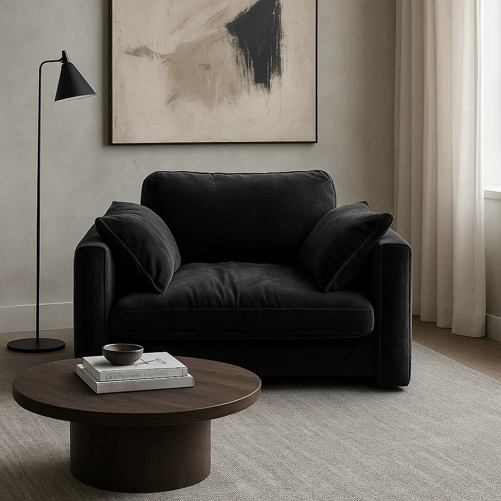 Sillón Sofá Moderno en Tela Negra con Cojines Acolchados