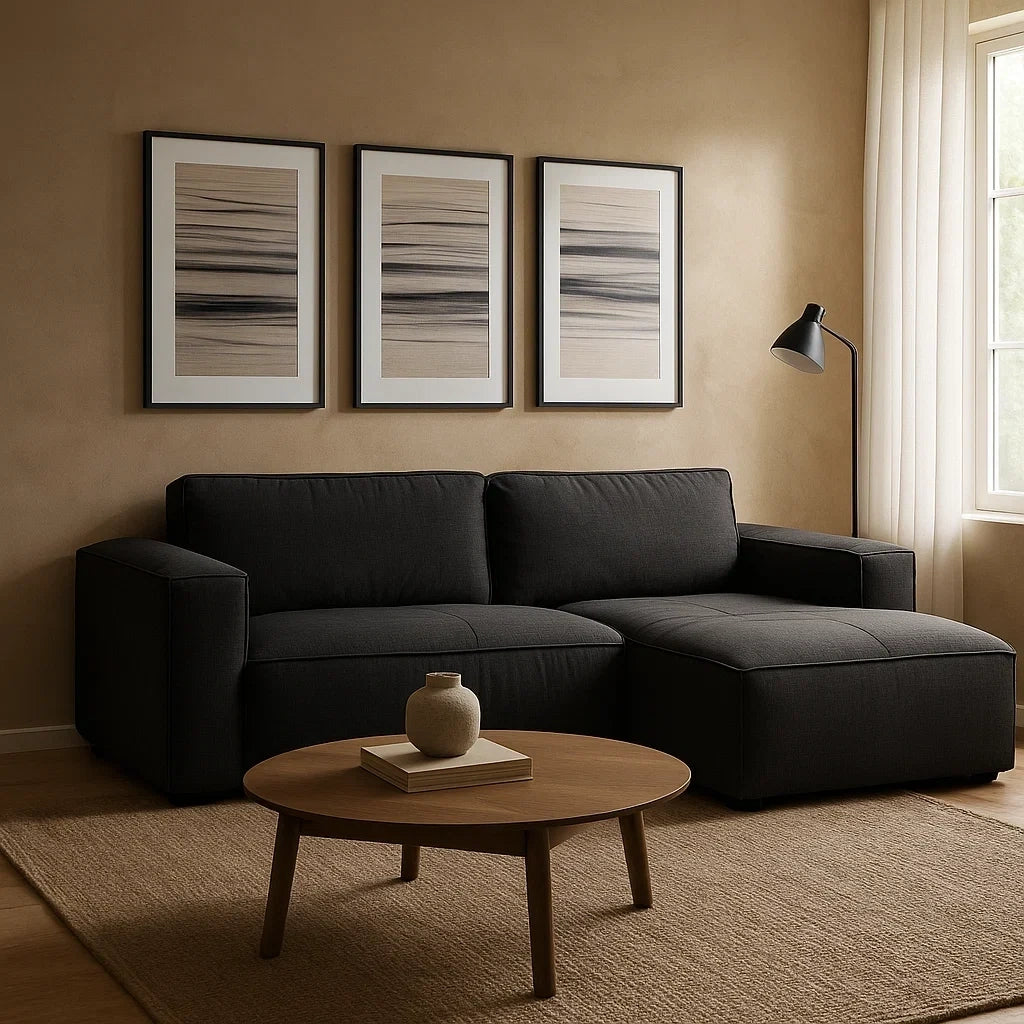 Sofá Chaise Longue de 3 Plazas en Tela Negra Moderna