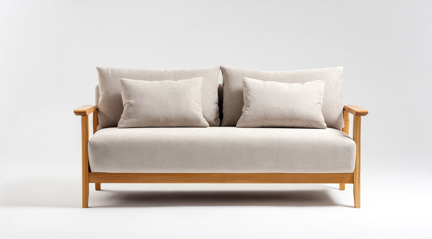 Sofá de 2 Plazas en Beige Claro con Cojines Suaves y Estructura de Madera