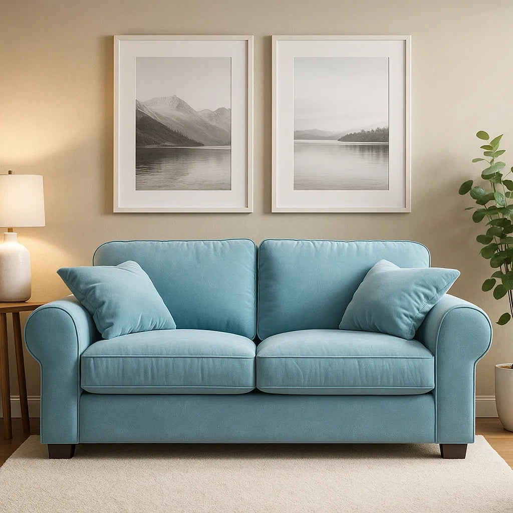 Sofá de 2 Plazas en Tela Azul Claro con Cojines Acolchados