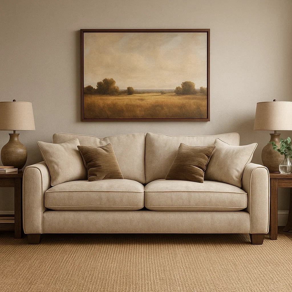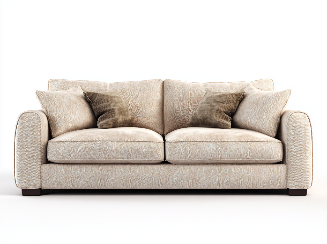 Sofá de 2 Plazas en Tela Beige con Cojines