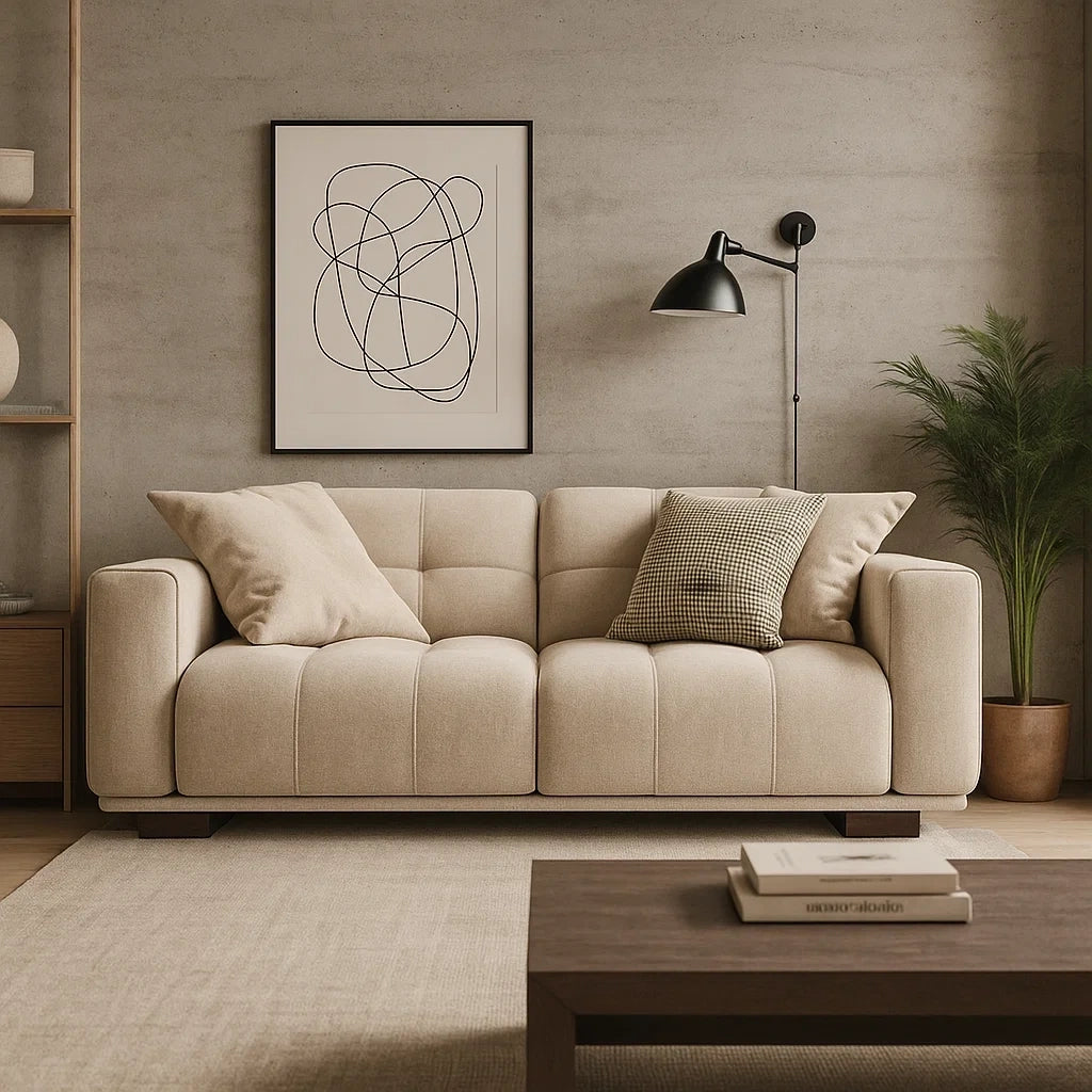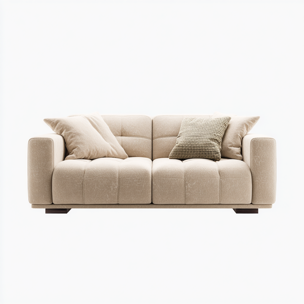 Sofá de 2 Plazas en Tela Beige con Cojines Incluidos