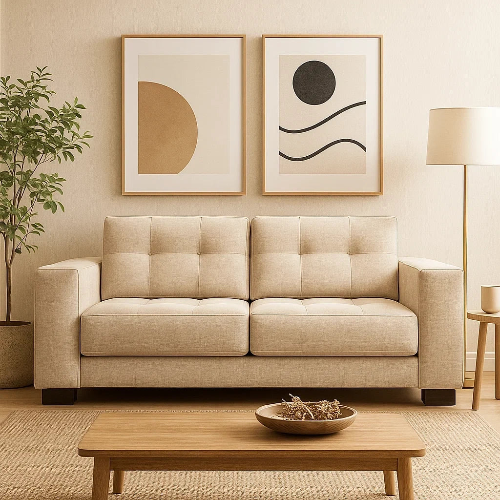 Sofá de 2 Plazas en Tela Beige con Reposabrazos Cuadrados