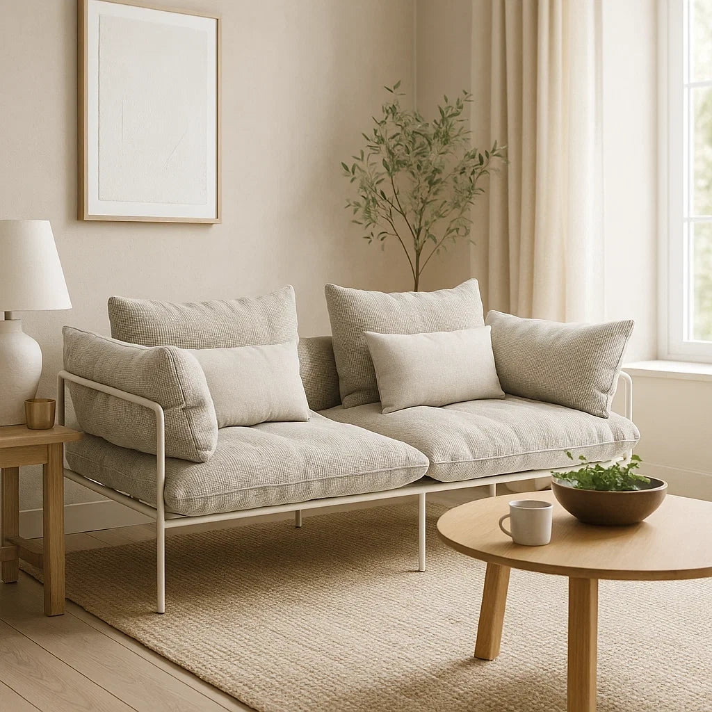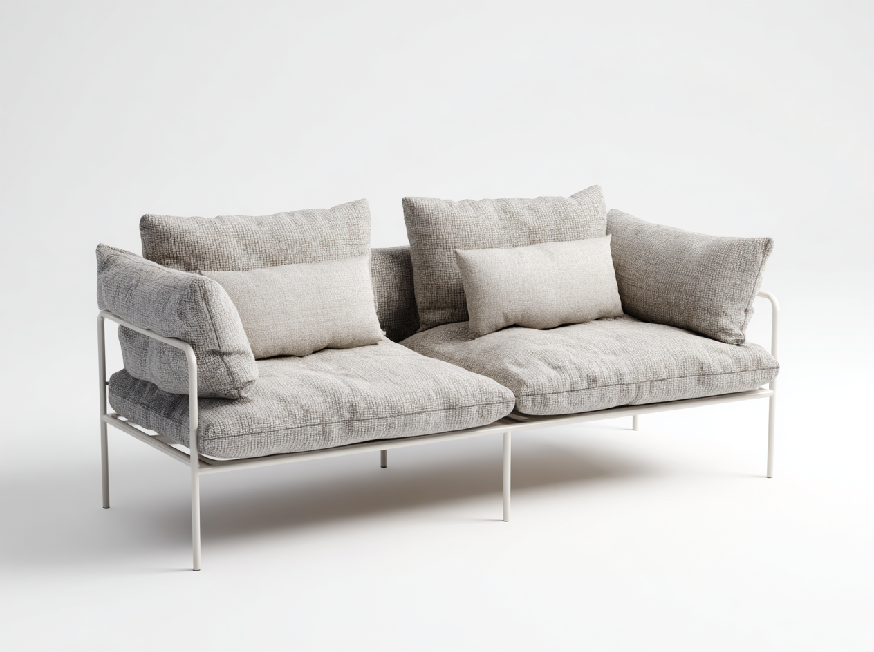 Sofá de 2 Plazas en Tela Gris Claro con Estructura Metálica Moderna