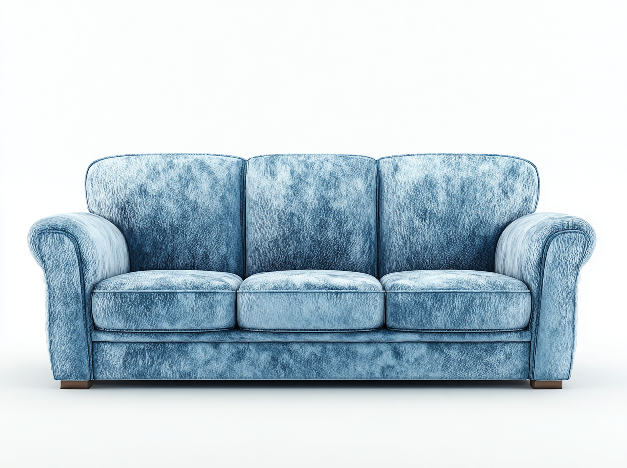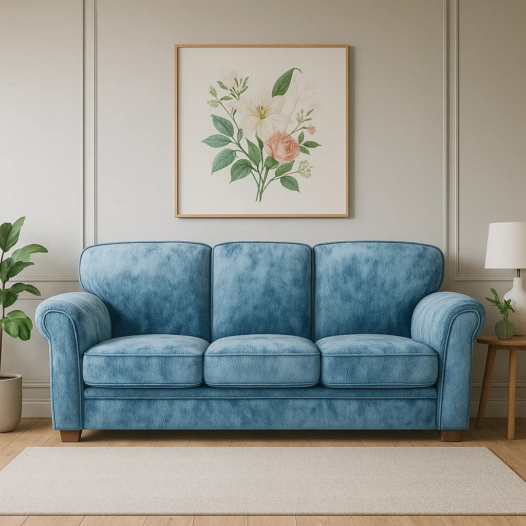 Sofá de 3 Plazas Clásico en Tela Azul Claro con Brazos Redondeados