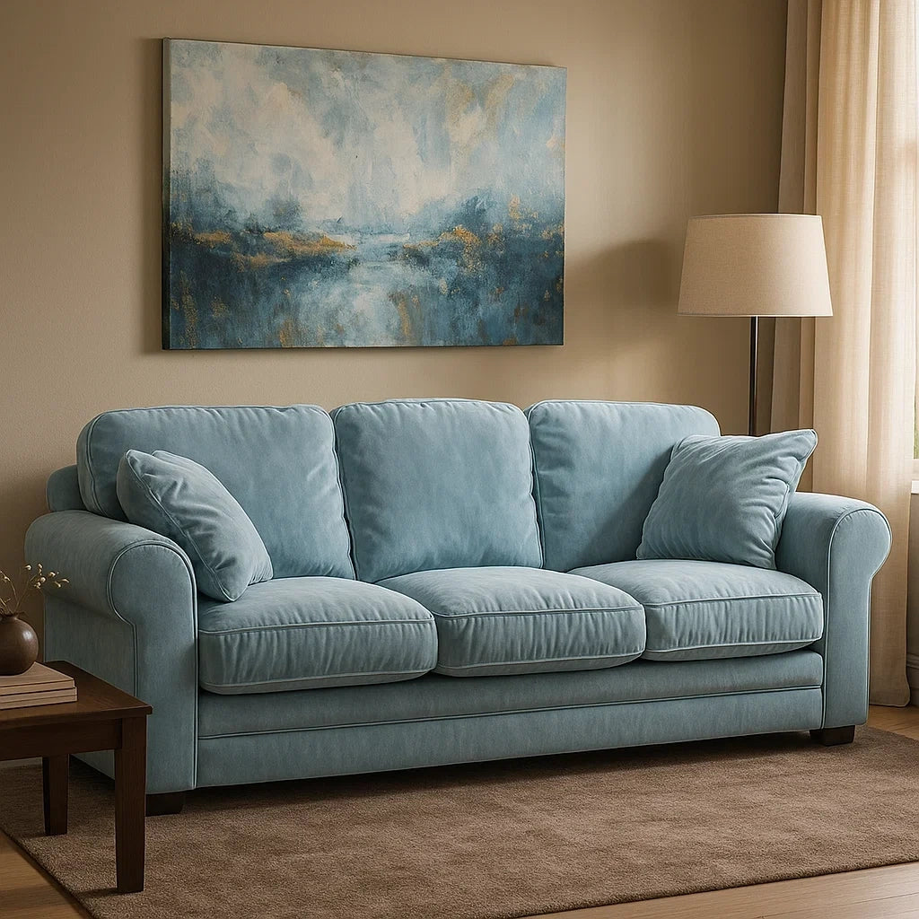 Sofá de 3 Plazas en Tela Azul Claro con Cojines Acolchados