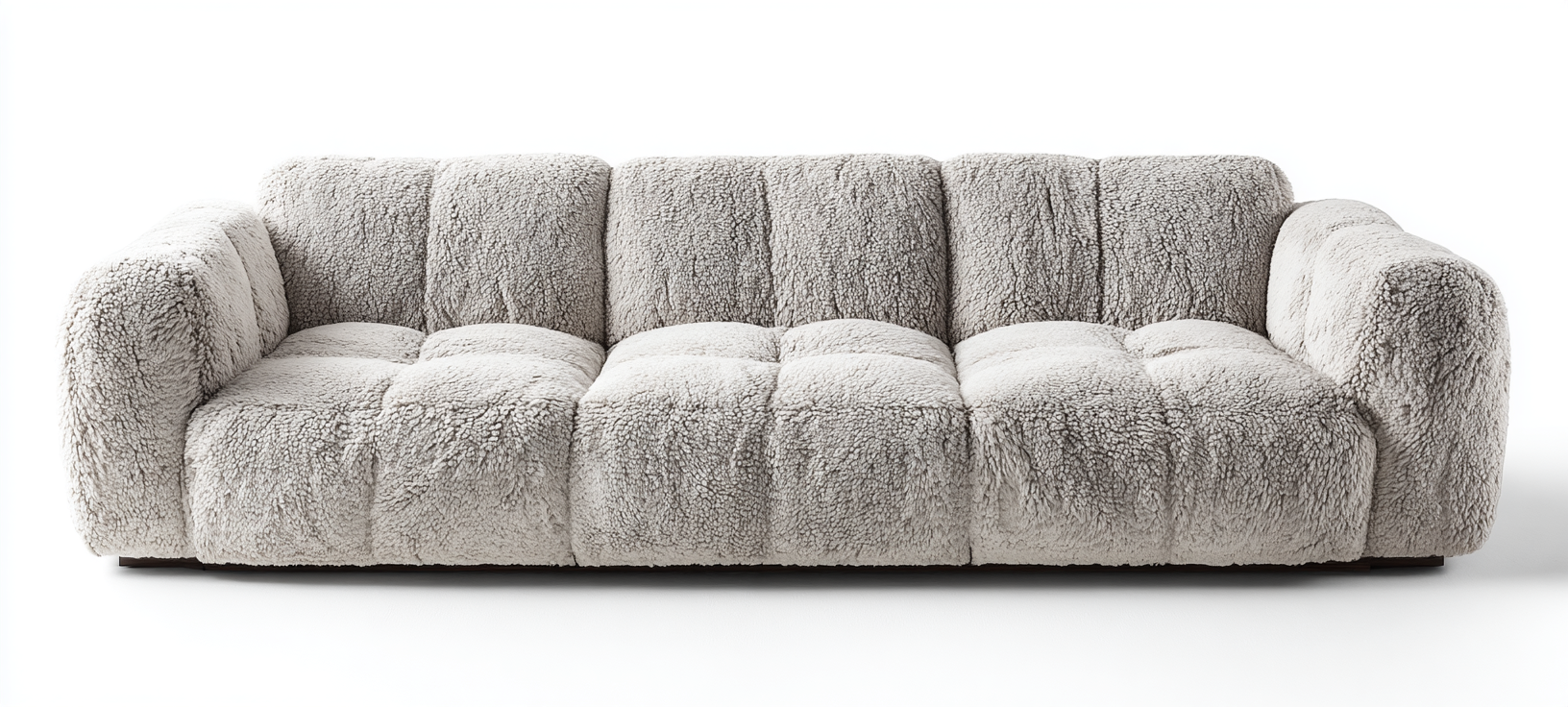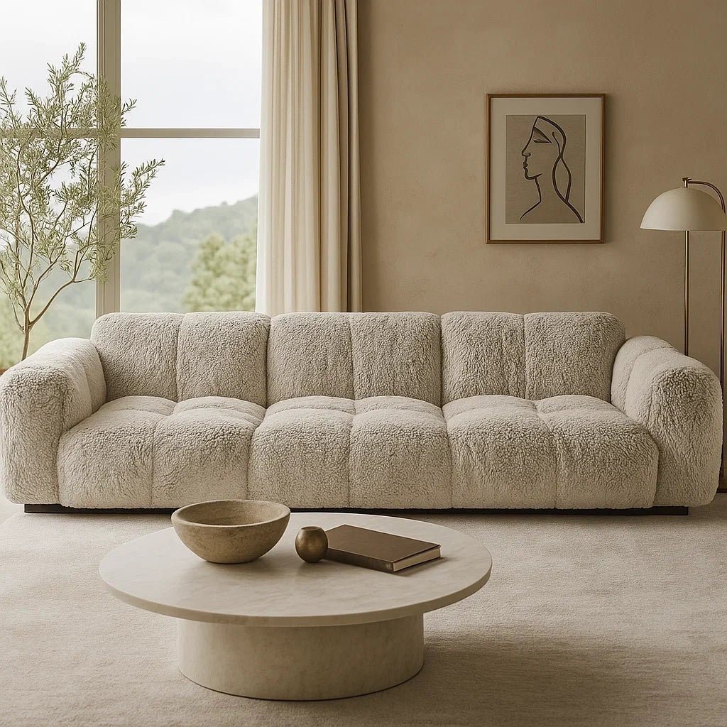 Sofá de 3 Plazas en Tela Borreguito Gris Claro con Asiento Acolchado
