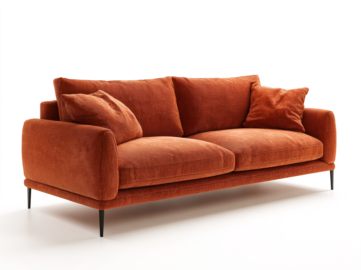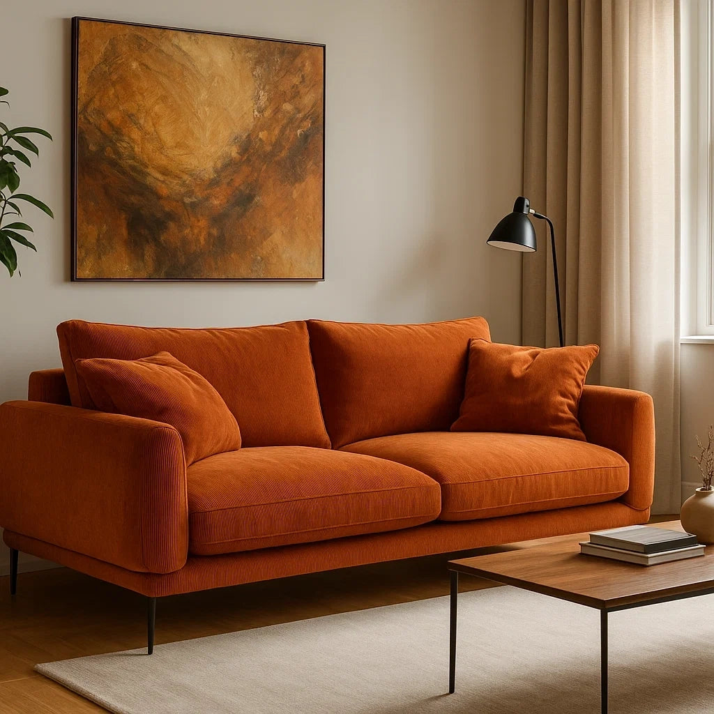 Sofá de 3 Plazas Moderno en Terciopelo Cotelé Naranja con Patas Metálicas