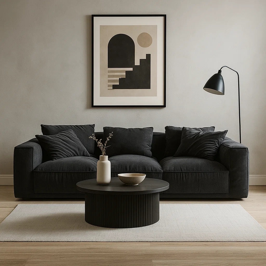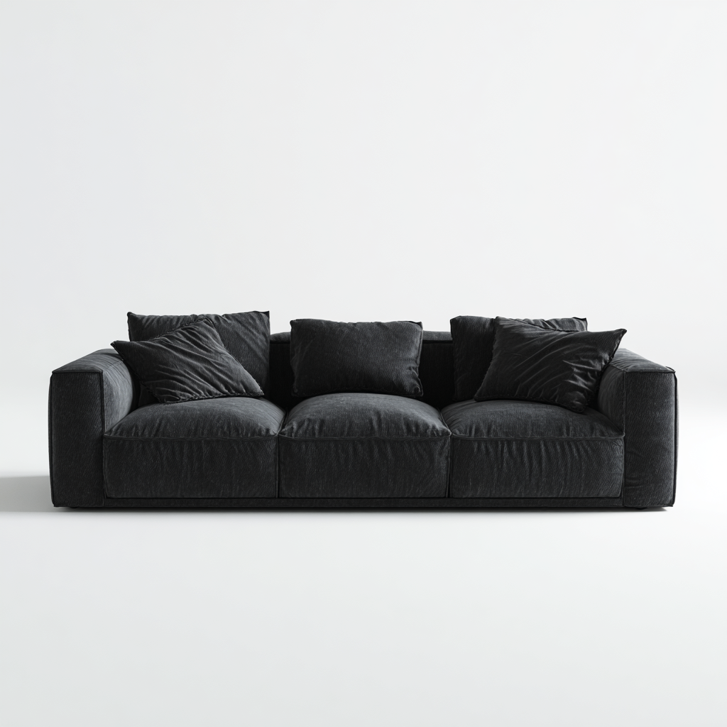 Sofá de 4 Plazas en Tela Negra con Cojines Incluidos