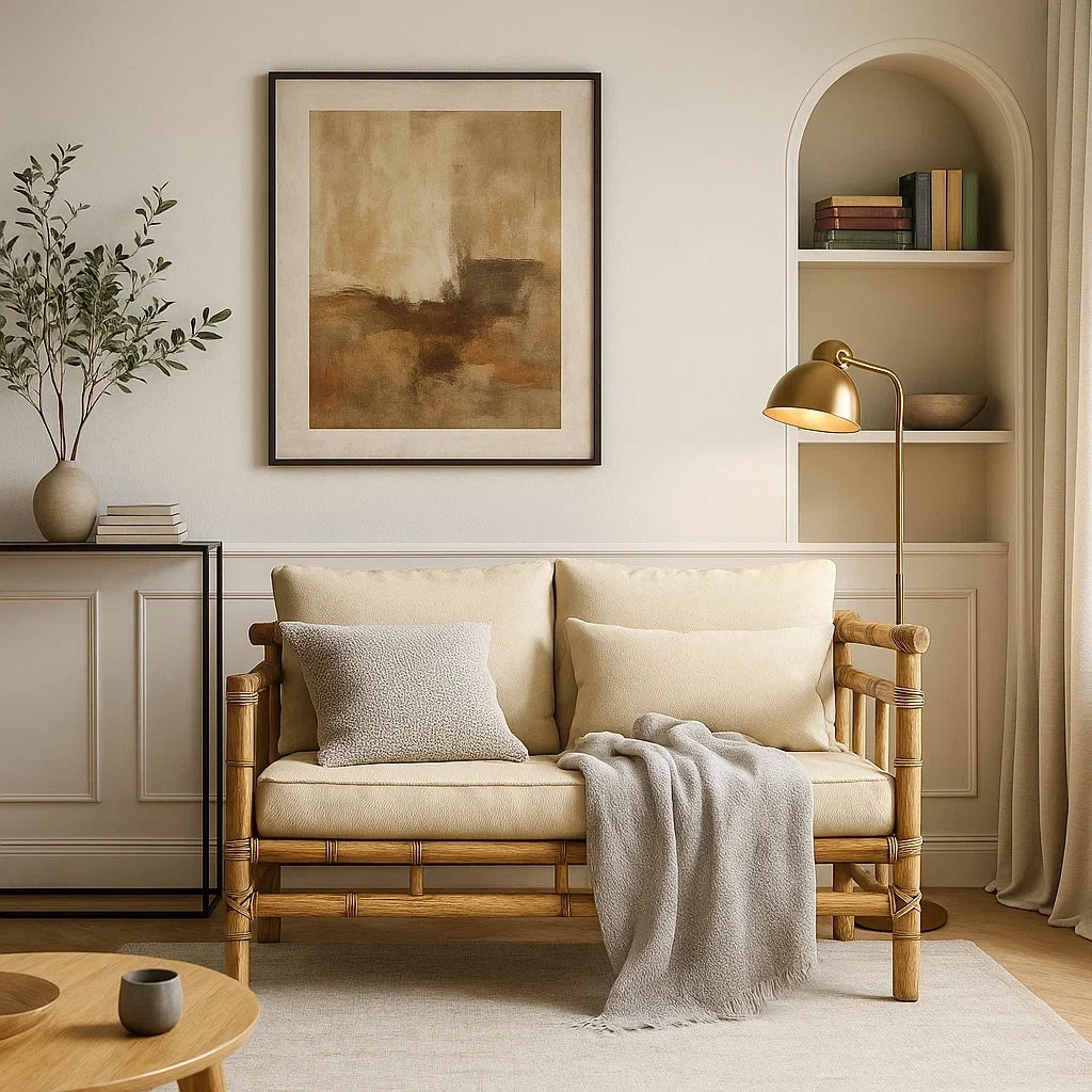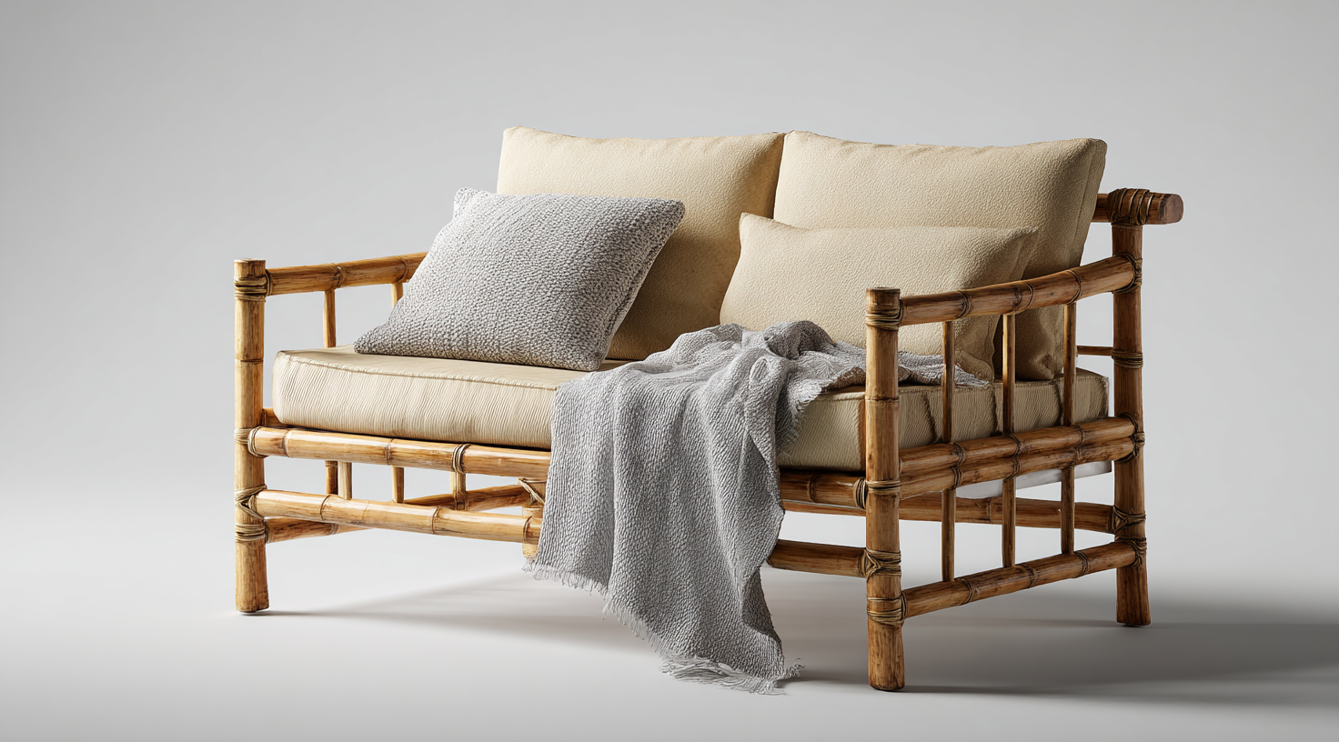 Sofá de Bambú de Dos Plazas con Cojines Beige