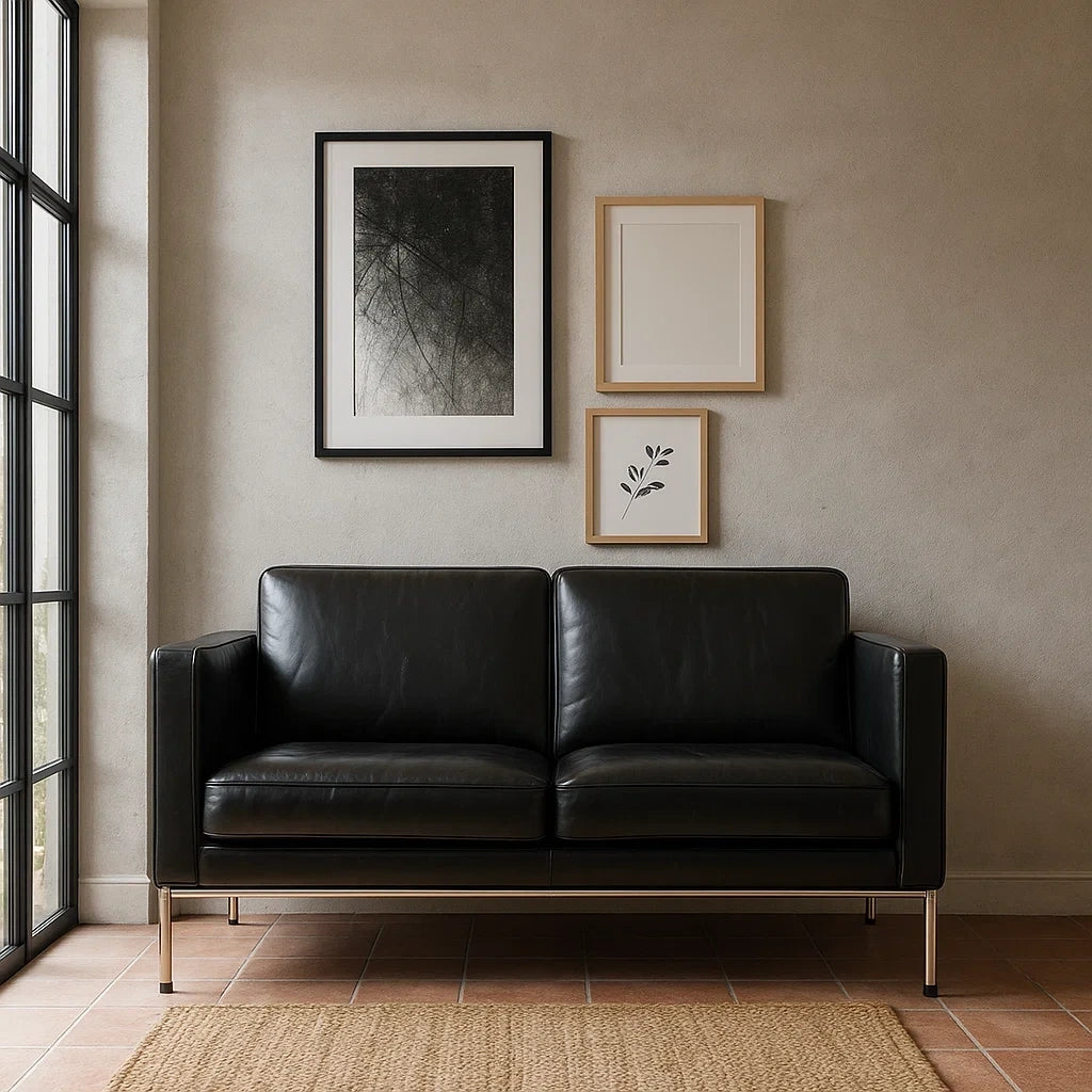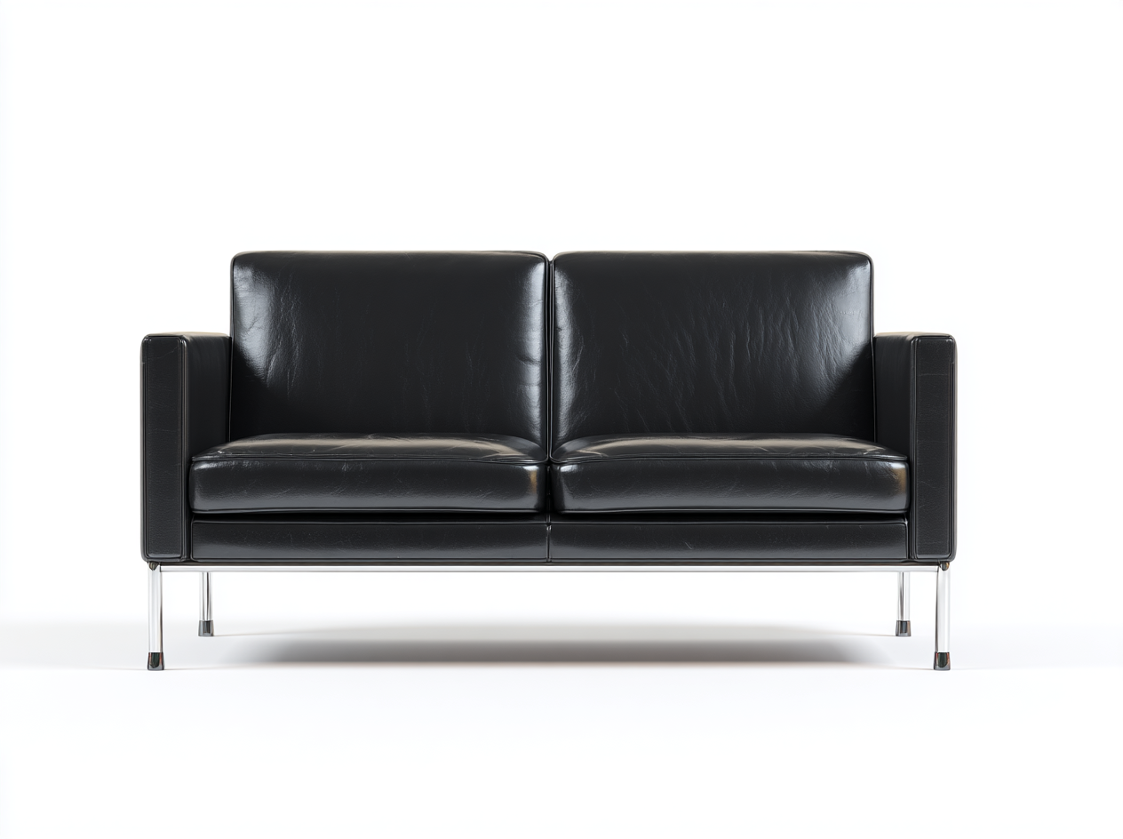 Sofá de Dos Plazas en Negro con Estructura de Acero Cromado