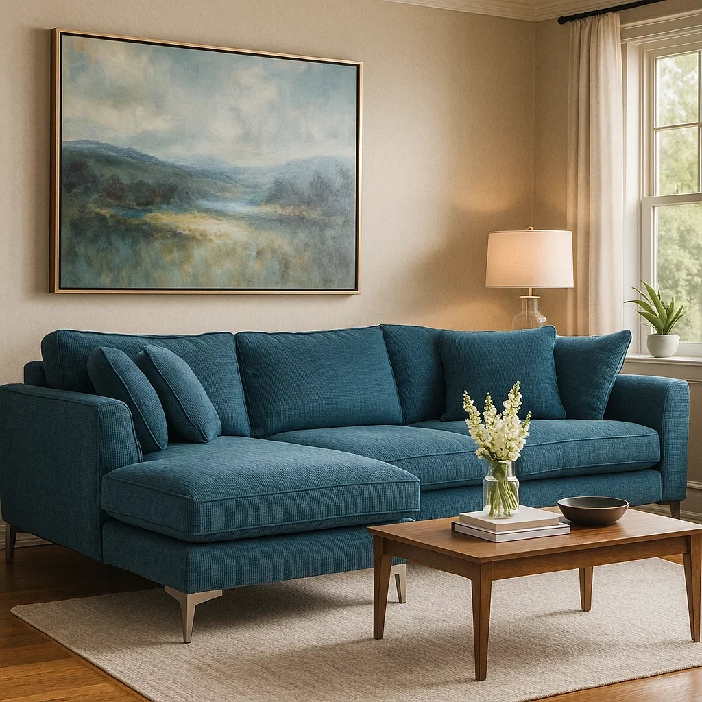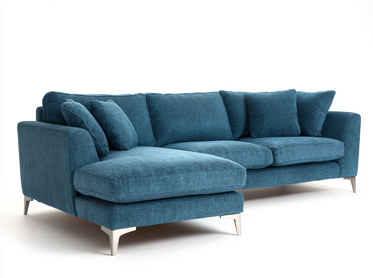 Sofá Esquinero Moderno de Tela Azul con Patas Metálicas