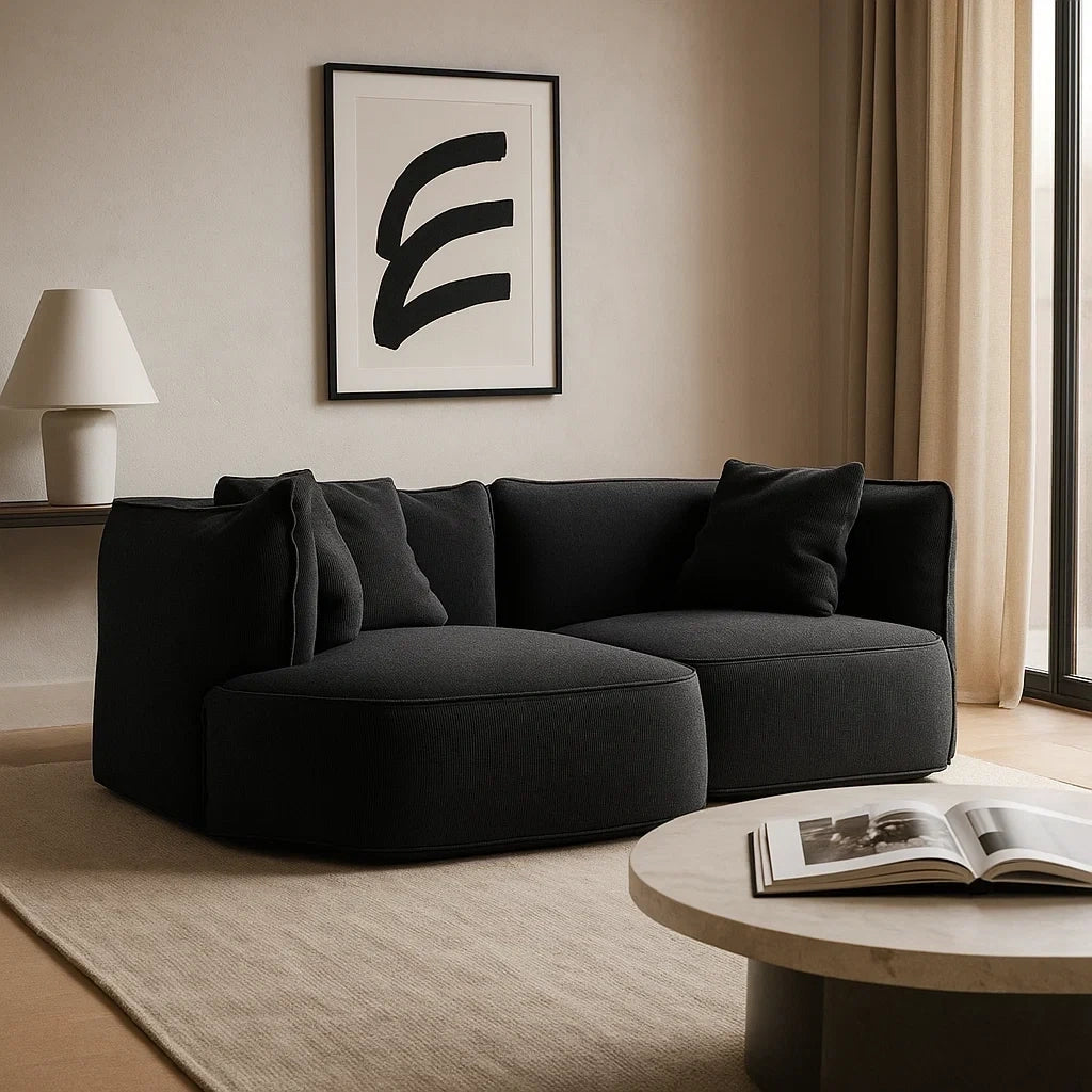 Sofá Esquinero Moderno en Tela Negra con Cojines Acolchados