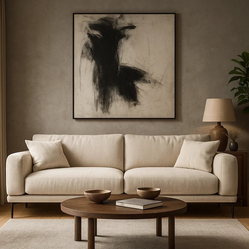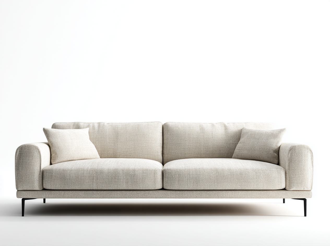 Sofá Minimalista de Tela Beige con Patas Metálicas Negras
