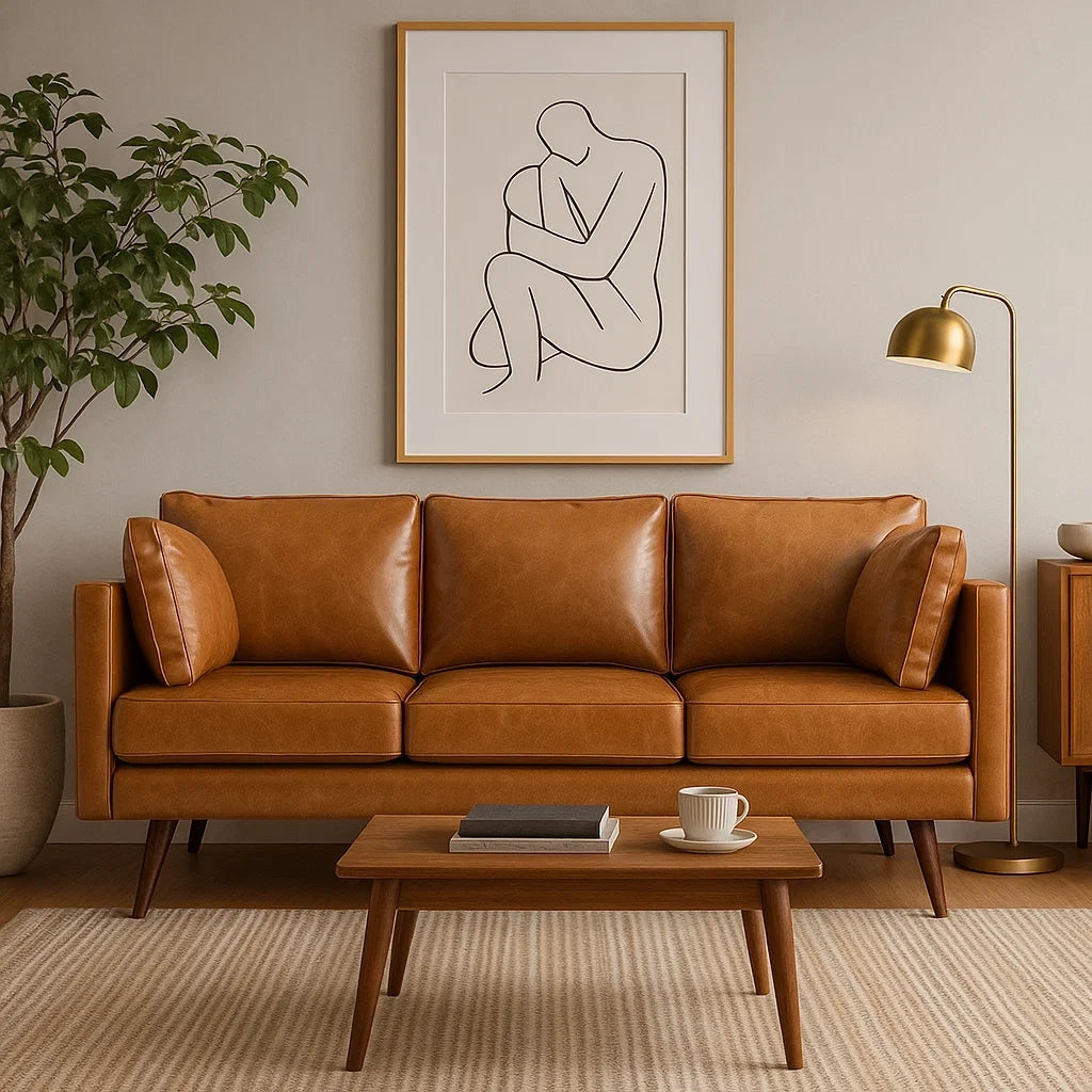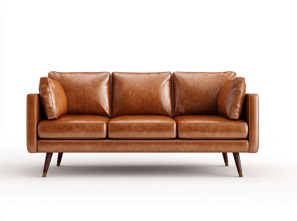 Sofá Moderno de 3 Plazas en Cuero Marrón