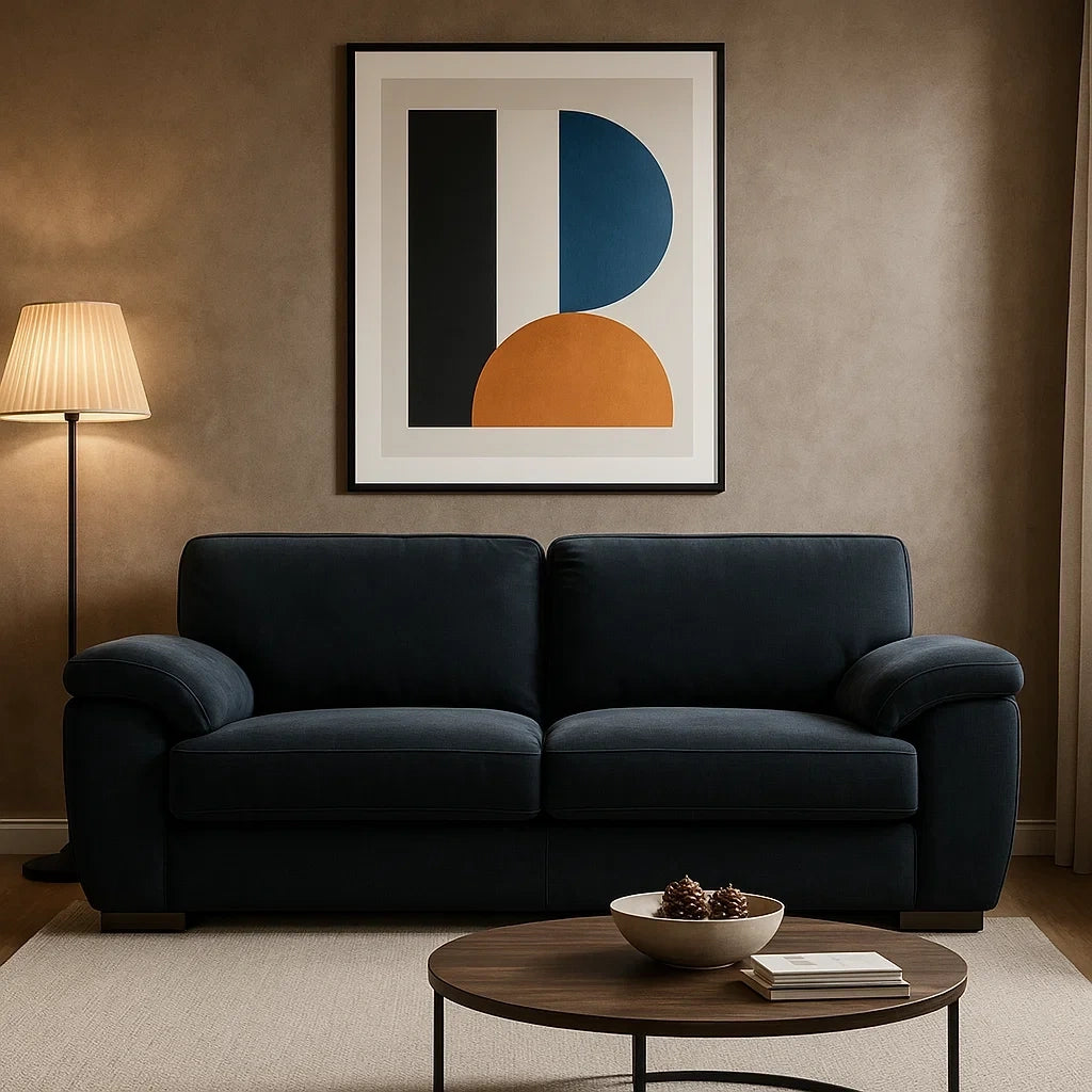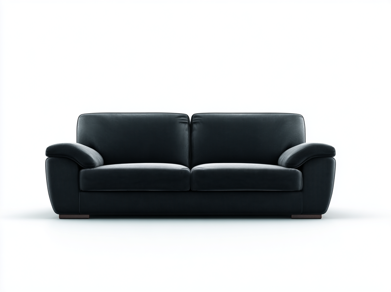 Sofá Moderno de Dos Plazas en Tela Negra con Reposabrazos Acolchados