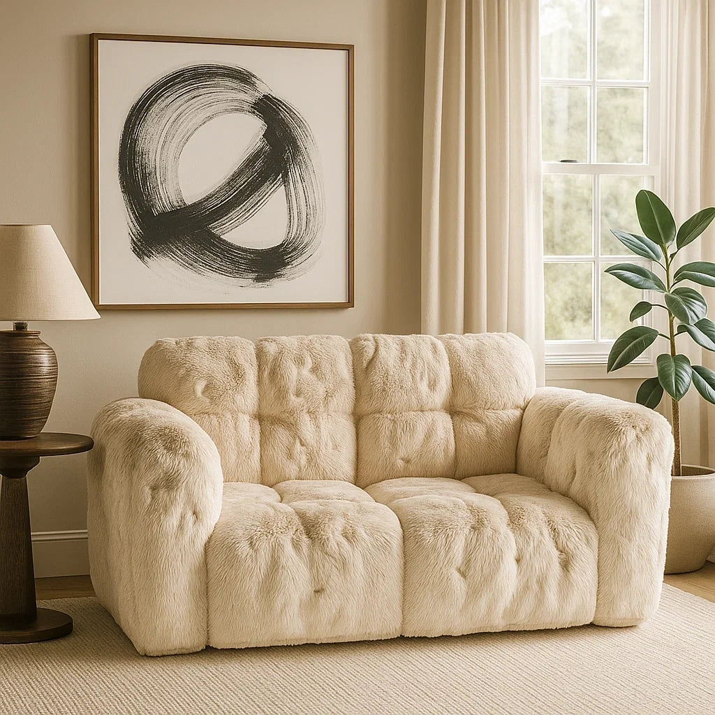 Sofá Moderno de Pelo Sintético Beige de Dos Plazas