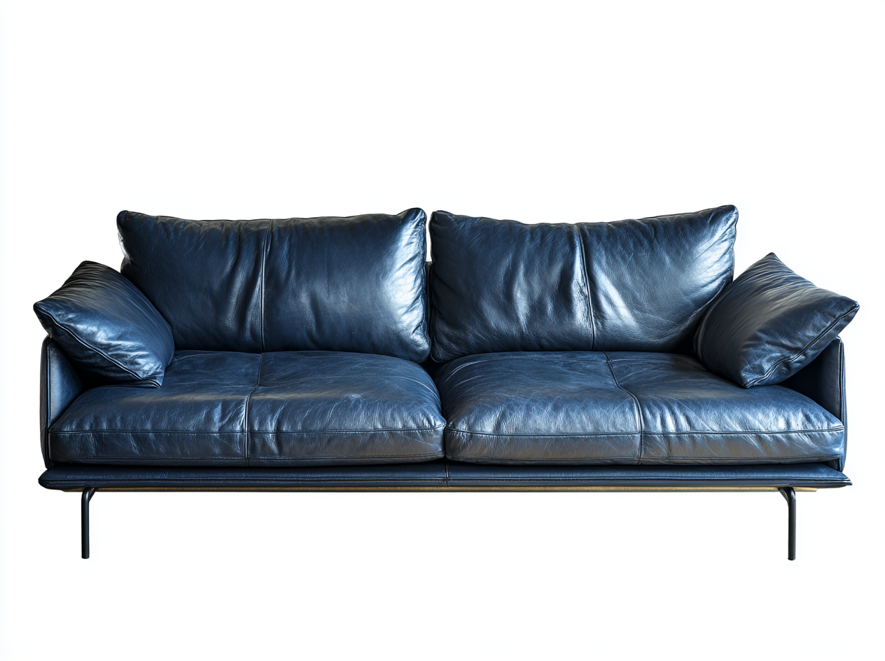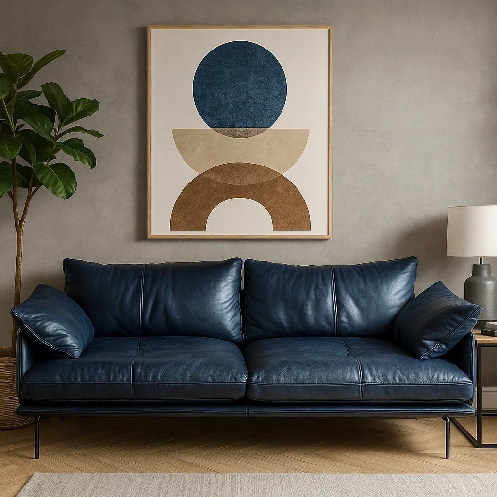 Sofá Moderno de Piel Azul Marino de 3 Plazas con Patas Metálicas
