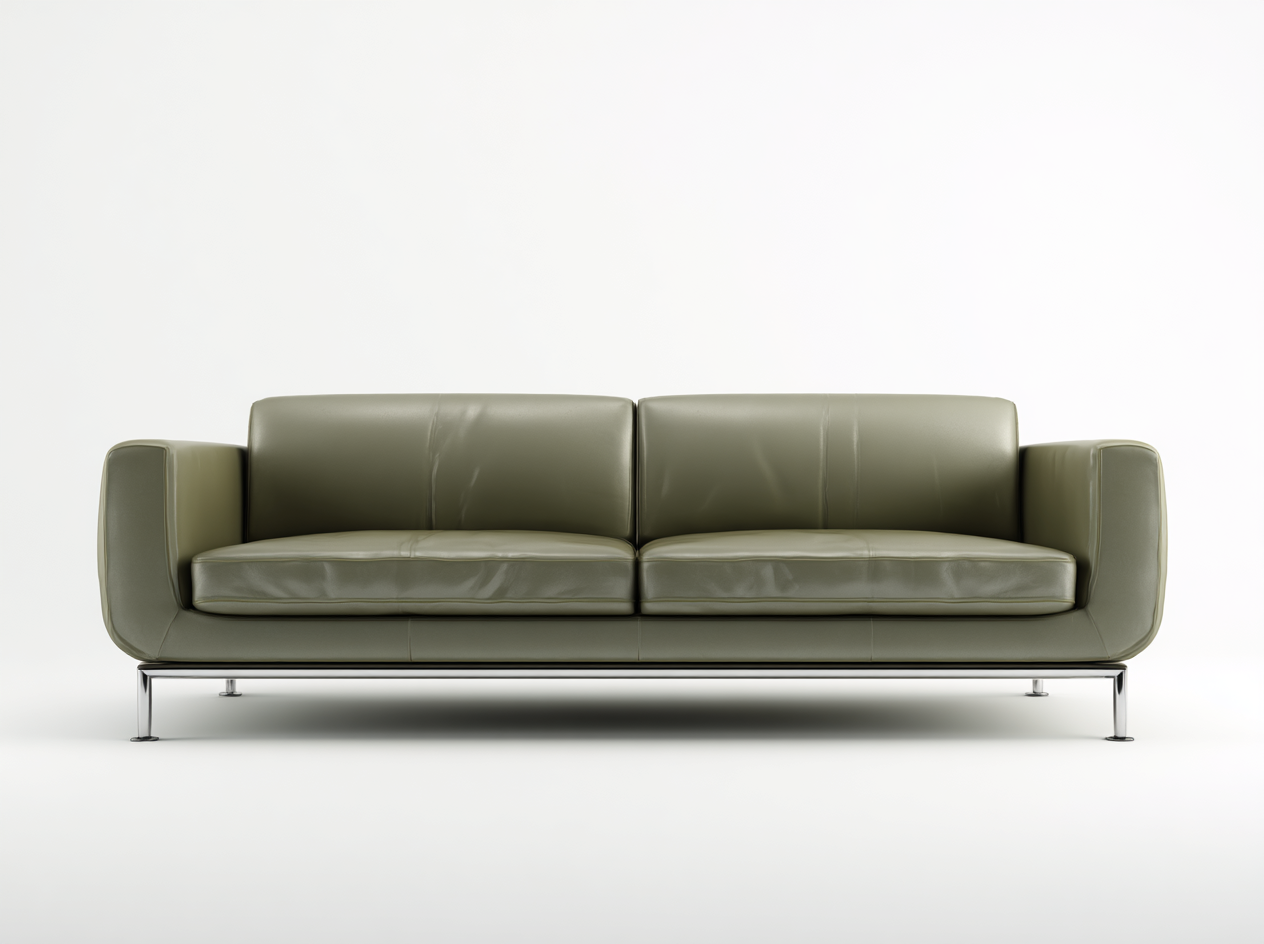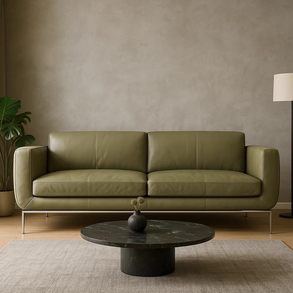 Sofá Moderno Minimalista de 2 Plazas en Cuero Verde con Patas Metálicas