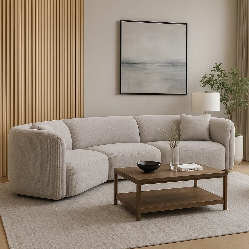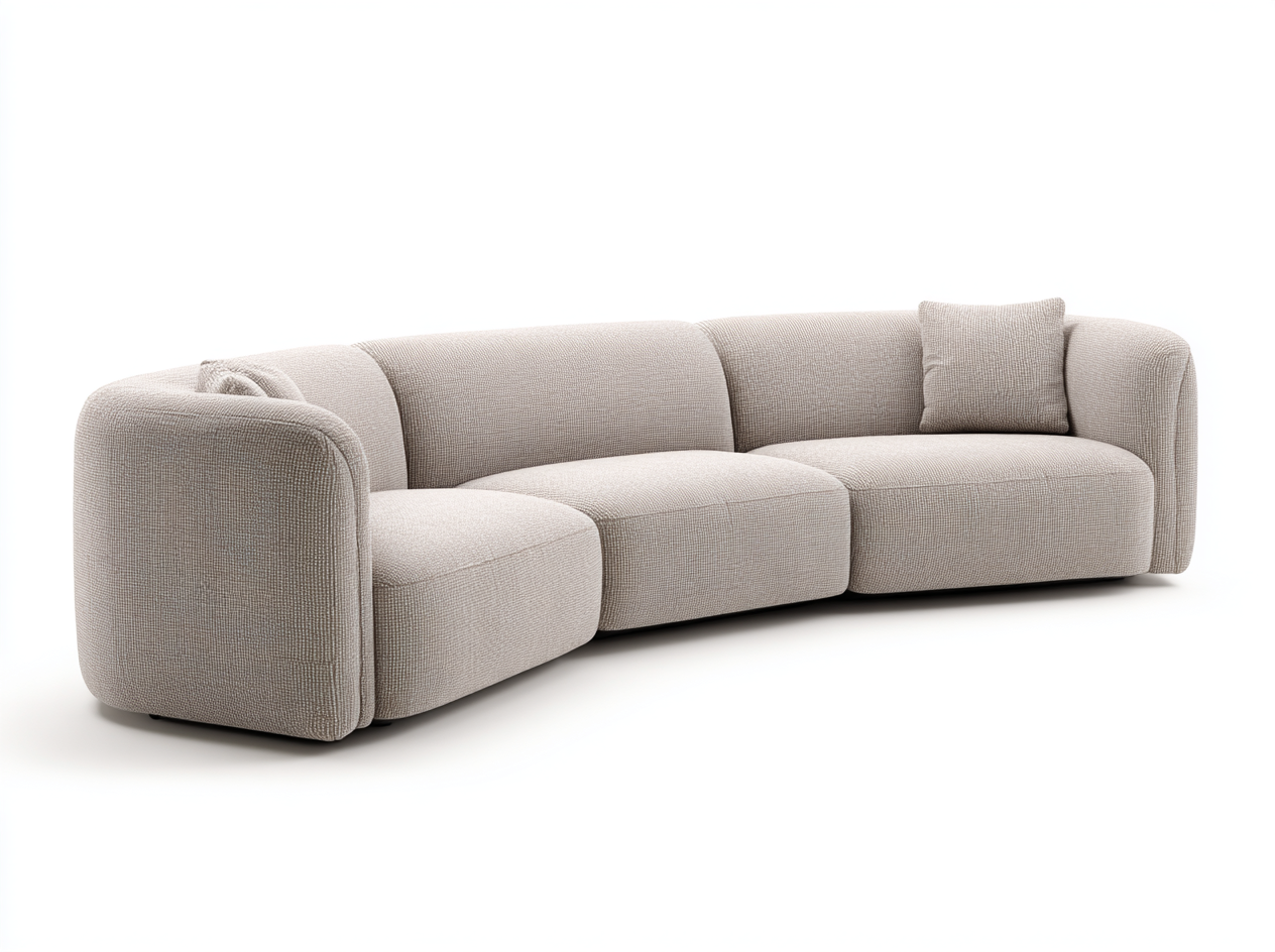 Sofá Seccional Curvo de 4 Plazas en Tela Beige con Cojines